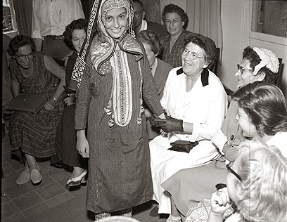 15-12. בסוף ספטמבר 1955 נערכת תצוגת אופנה של בית הספר סליגסברג בירושלים, בנוכחות רעיית נשיא המדינה, רחל ינאית-בן צבי. בתצוגה גם עולות מתימן בלבוש מסורתי. (תמונה 14-15).