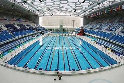 הבריכה האולימפית בסין. שם הטמפרטורה היתה בסדר (צילום: גטי אימג'ס)