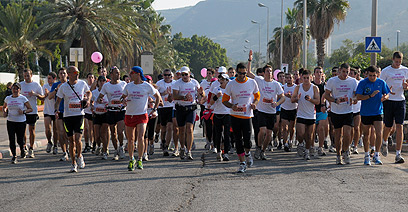 רצים עם שניאור במרתון טבריה (צילום: יעל בר פסח)