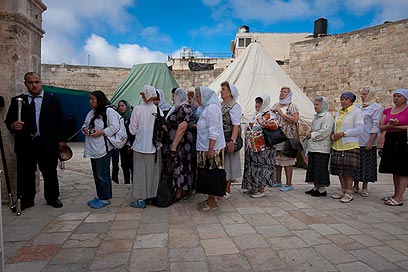 מאמינים אורתודוקסיים ממתינים להיכנס לקאפלת העלייה (צילומים: גדי רייז)