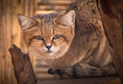 חתול החולות מתוך אנציקלופדיית ynet >> מין מן הקטנים במשפחת החתוליים. אורך הגוף כ-45 ס"מ, אורך הזנב כ-26 ס"מ. משקלו כ-2.3 ק"ג. אוזניו ארוכות ורחבות, והן קבועות בצדי הראש במקום נמוך יותר מזה של חתול הבר. הראש רחב, ומיקום האוזניים בצדדיו מקנה לחתול החולות צללית ראש אופיינית מאוד. צבע הפרווה אפור-צהוב בהיר. בצדן החיצוני של הרגליים הקדמיות בולטים שני פסי רוחב כהים.