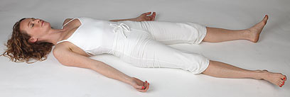 שיכבו על הגב כשהרגליים והידיים פרושות על הרצפה בנוחות, כפות הידיים פונות כלפי מעלה. עצמו את העיניים, הרפו את כל השרירים, גם את אלו שאנו נוטים להחזיק (השתמשו בנשיפה ככלי להרפיה) והקשיבו לגוף שלכם ולתחושות שעולות ממנו. שימו לב לנשימה, תנו לה להיות חופשית וזורמת. עברו בדמיון על אברי הגוף מלמטה עד למעלה, רככו אותם, ואפשרו להם לשקוע אל הרצפה בכבדות. אם אתם חשים במתח באזור מסוים, העבירו את המודעות לאותו מקום ונשמו לתוכו עד הרפיה.