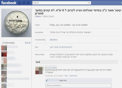 קבוצת המחאה בפייסבוק. מוצר אחר כל חודש