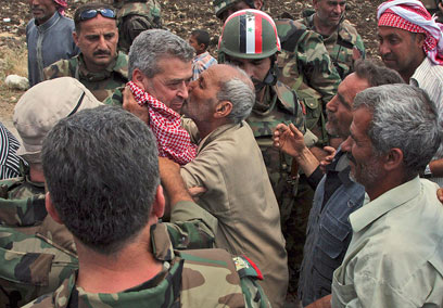 עסקים כרגיל? תושב ג'סר אל-שוגור מנשק קצין צבא סורי (צילום: AP)