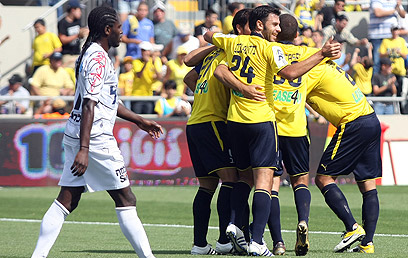 שחקני מכבי ת"א ונתניה. אי אפשר לשנות שיטה כל שנה (צילום: דרור עינב)