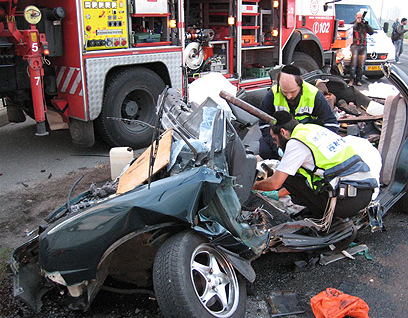 זירת התאונה בפתח תקווה (צילום: יוסי ימפל - דוברות זק"א)