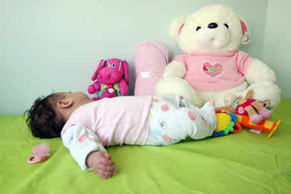 מגיבה בחיוכים אוהבים. התינוקת הנטושה בבית החולים (צילום: עמית מגל)