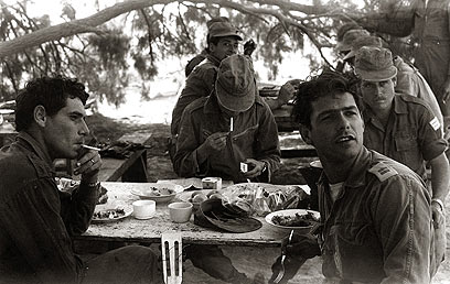 14. עיון מוסה, ארוחת בקר בצל ענפי אשל, משמאל חיים אלקן המ"פ.