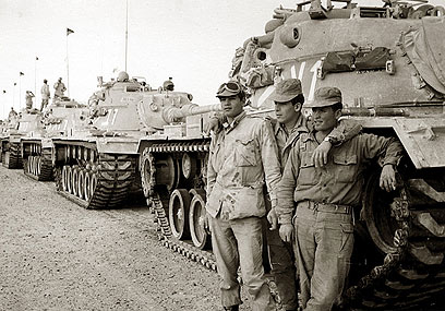 12. הצוות של מ"מ-2 , מימין: דוד בן הרוש טען קשר, אמנון מאירשטיין (מואב) נהג וגידי אהרוני תותחן.