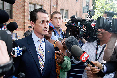 במפלגתו רצו למנוע מבוכה. וינר בכניסה למסיבת העיתונאים (צילום: AP)