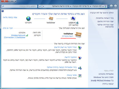 2. בחרו באפשרות "פתח את מרכז הרשת והשיתוף".