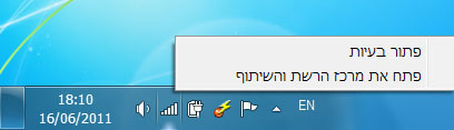 1. לחצו קליק ימני על האייקון של החיבור לרשת.