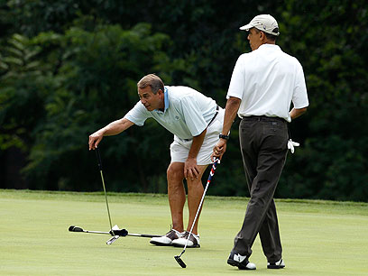 דיון תקציבי על הדשא, בין הגומות: נשיא ארצות הברית, ברק אובמה, ניצל גם את סוף השבוע הזה למשחק גולף, כפי שהוא עושה לעיתים קרובות, אך הפעם הצטרף אליו יריב ראוי - ספורטיבית ופוליטית כאחד - בדמות יו"ר בית הנבחרים הרפובליקני, ג'ון ביינר.