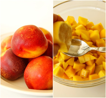 כ-7 נקטרינות (1 ק"ג פרי) בשלות בגודל בינוני, קלופות, מגולענות וחתוכות לקוביות קטנות (ניתן להמיר בפירות נוספים: משמשים, שזיפים, אפרסקים, תפוחים)