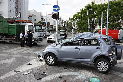 התנגש במשאית, התהפך ופצע קשה הולכת רגל (צילום: אבי מועלם)