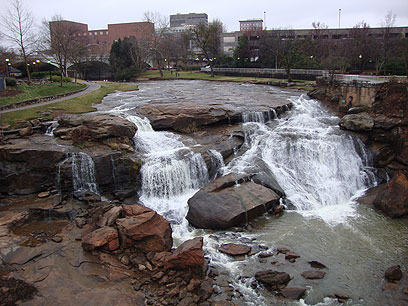 נחל הזורם במרכז העיר גרנוויל בדרום קרולינה (צילומים: יוסף ג'קסון)