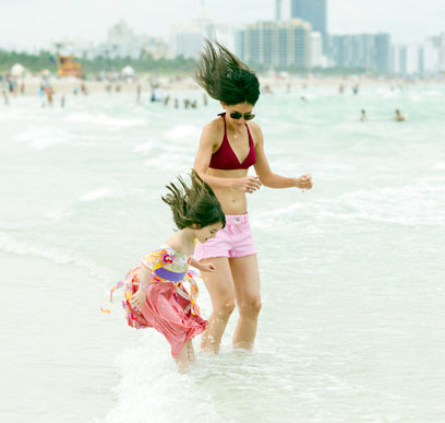 קייטי הולמס ובתה סורי קרוז נהנות מהקיץ. השתיים הגיעו בסוף השבוע לחוף הים במיאמי כדי להשתכשך במים הצוננים ולבלות קצת זמן איכות של אם ובת. מאז שסורי בת החמש צצה לאוויר העולם ומדורי הרכילות היא הפכה לסוג של אייקון אופנה, כשרק לאחרונה הראינו לכם אותה בנעלי עקב. הפעם, אמא קייטי העדיפה לשמור על עור בתה ולא להלביש אותה בבגד ים, כיאה למזג האוויר ששרר באותו היום. סורי המתוקה נכנסה לים עם בגדים - אולי בגלל הסכנות מהשמש, או שבכלל מדובר במשהו חדש וטרנדי.