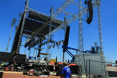 ובינתיים באצטדיון רמת גן, ההכנות בעיצומן (צילום: עופר עמרם)