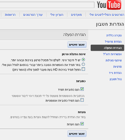 שם בחרי ב"יש לי חיבור איטי. לעולם אל תפעיל סרטון באיכות גבוהה יותר", גם אם אין לך באמת חיבור איטי. אם תרצי דווקא לנגן הכל ב-HD בחרי באפשרות הזאת שם, ותהני מסרטי החתולים הטובים שיש לאינטרנט להציע. אגב, באותו מסך הגדרות אפשר להסיר את ה-V מ"הצג הערות" - זה ימנע מכל המלבנים הכחולים והירוקים המעצבנים שאומרים "עשה מנוי לערוץ שלי עכשיו!" להופיע על סרטונים.