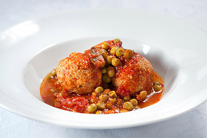 קציצות עוף ברוטב עגבניות ואפונה (צילום: ירון ברנר)