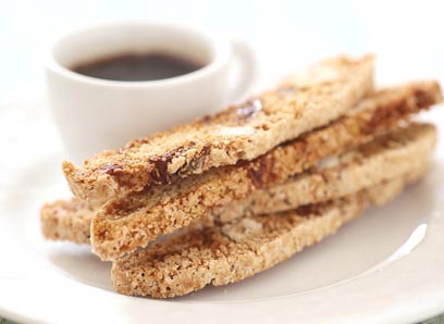 ביסקוטי מתובלים היטב, מעניינים וטעימים מאוד מאוד. שימו לב לכך שהמתכון מצריך אפייה כפולה, עם המתנה ארוכה ביניהן. אין לוותר על הצינון הארוך אחרי האפייה הראשונה, משום שהפרוסות תמעכנה בחיתוך/תחתכנה בצורה לא יפה. מומלץ לחתוך את הדבלים בסכין חדה ולא במעבד מזון, לקבלת תוצאה אסתטית יותר.