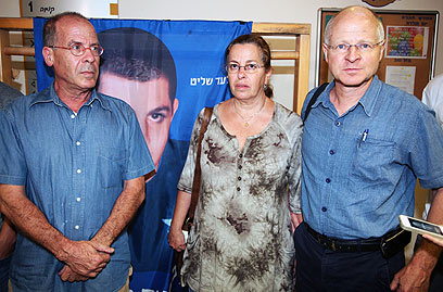 שלו עם הוריו של גלעד, לפני שנכנס ל"צינוק" (צילום: הדר כהן)