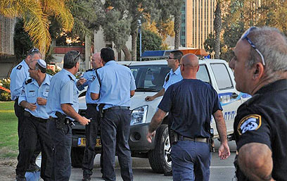 כוחות משטרה בזירה. "תקף אותי עם חפץ חד" (צילום: הרצל יוסף)