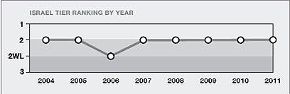 ישראל אינה נכללת ברשימת המדינות הדמוקרטיות המערביות המתקדמות בכל הקשור לעמידה בסטנדרטים המינימליים הנדרשים לטיפול בסחר בבני אדם, רשימה שבה נכללות מדינות מערב אירופה, ארה"ב, קנדה ואוסטרליה, אלא בקבוצת המדינות השנייה, זו שאליה משתייכות מדינות "שעושות מאמצים לשפר את המצב".