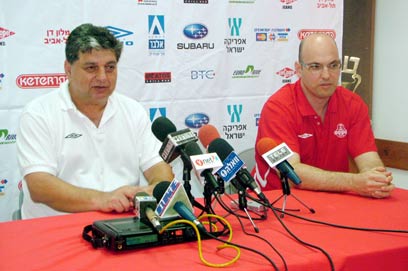אמיר לובין (מימין), בתקופתו של יצחק שום בהפועל ת"א (ערן קמינסקי)