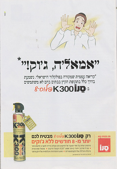 חברת סנו פתחה את הקיץ במבצע למכירת קוטלי חרקים וג'וקים. במודעות שהושקו במגזר החרדי נראה בחור עם פנים מבועתות תחת הכותרת "אמאל'ה ג'וק!". בדברי ההסבר נכתב: "קריאה עממית שקורה בפולקלור הישראלי. נשמעת בדרך כלל בתקופת הקיץ בבתים בהם לא משתמשים ב...".