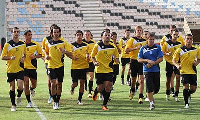 שחקני מכבי נתניה חוזרים לכושר (צילום: עוז מועלם)