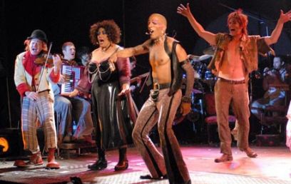 גולן (במרכז) בהצגה "ארץ בושת" (צילום: ניקול דה קסטרו)