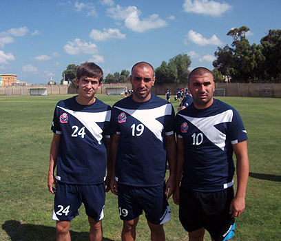ערן לוי, ליאור ז'אן והנבחן החדש, ניקולס קזצ'וקס (צילום: הפועל חיפה)