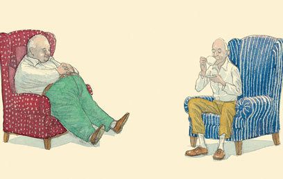 דווקא החשיפה המכוונת והנעימה באיורים של הקצוות הפרומים ושל האזורים האפורים הלא-מוחלטים, מדגישה עוד יותר לאורך הטקסט את הפסקנות הטורדת שמעמידה שני "סבא אברהמים" בשבלונות בעל כורחם.