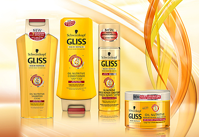 Gliss מציעים את סדרת Gliss Oil Nutritive לטיפוח וטיפול בשיער ארוך הנוטה לקצוות מפוצלים מבית שוורצקופף. הסדרה כוללת שמפו, קונדישנר, קונדישנר ספריי משקם אקספרס ומסיכת שיער בטכנולוגיה ייחודית לשיקום תא השערה ובתוספת שמני הזנה עשירים של ארגן ואגוז שיאה. מחיר לשמפו/קונדישנר - 26 שקל ל-400 מ"ל, קונדישנר משקם קצוות - 35 שקל ל-200 מ"ל, מסכת שיער משקמת - 49 שקל ל-200 מ"ל.