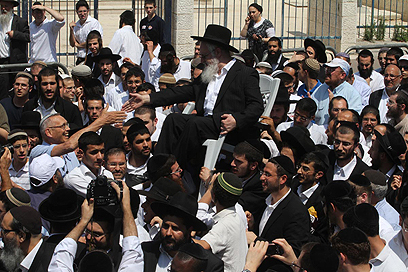 תומכי הרב יוסף מניפים אותו אחרי שחרורו ממעצר (צילום: גיל יוחנן)
