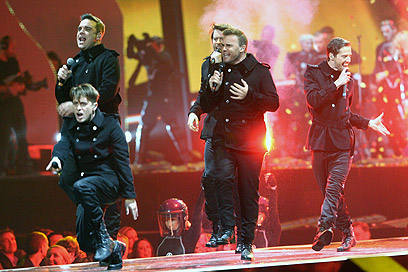 כשהסתיימה הספירה לאחור הגיחו לבמה ארבעת חברי להקת הבנים שהפכה ללהקת גברים: גארי בארלו, מארק אואן, ג'ייסון אורנג' והווארד דונלד. הם פתחו את המופע עם להיטים שלהם פרה-חזרתו של רובי: "Rule The World", "Greatest Day","Hold Up A Light, "Patience" ו-"Shine".
