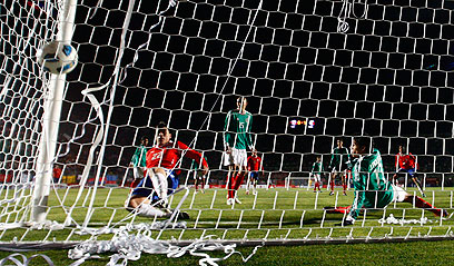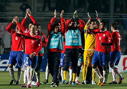 שחקני צ'ילה חוגגים את המהפך והניצחון על מכסיקו (צילום: AP)