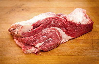 מראה: נמצא מתחת לצוואר ולצלעות כלפי מטה. הנתח מתאפיין בסיבים ארוכים ומודגשים, כאשר נתח שומן רציני מתנוסס בקצהו.