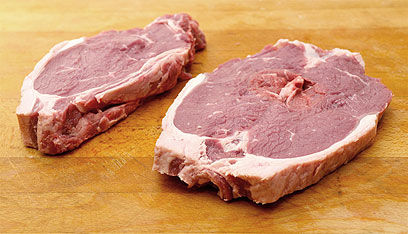 סינטה פרוסה בשני אופנים: חיתוך רגיל (משמאל) וחיתוך "פרפר" (מימין) - מה שנותן לנו סטייק מרשים ובעל שטח ענק שישמח כל קרניבור (צילום: ירון ברנר)