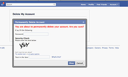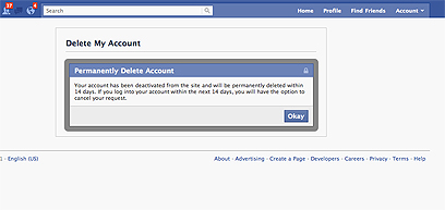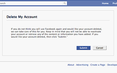 עכשיו קורה משהו מעניין. פייסבוק כותבים שאם אתם לא רוצים להיות עוד חלק מהרשת החברתית, אין בעיה. הם ימחקו לכם את החשבון, אבל לא לפני שיעברו שבועיים מהרגע שתלחצו על לחצן ה-Submit. מתוחכם מאוד, פייסבוק מודעים לעובדה ששבועיים הם נצח בזמן אינטרנט. אנשים סביבכם ישאלו אתכם אם שמעתם על החרם האחרון, או אם קראתם את הסטטוס המצחיק של חבר משותף, ושיחות בעבודה יגרמו לכם להרגיש מנותקים ולא שייכים. איפוק הוא תכונה נדירה מאוד אצל בני אדם אבל, אם רק תצליחו להחזיק מעמד ולהתעלם מכל השיחות החיים שלכם יהיו קלים יותר. אם אתם חוששים שלא תחזיקו מעמד הנה פיתרון: