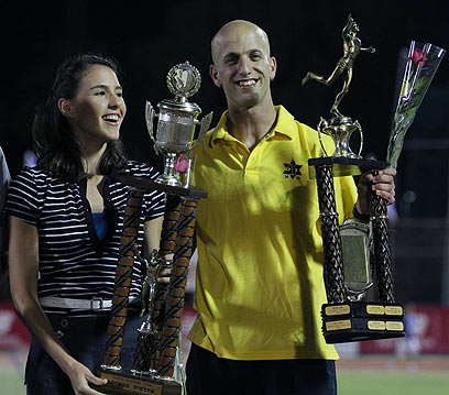 פרנקל והלוי עם גביעי ספורטאי השנה (צילום: אורן אהרוני)
