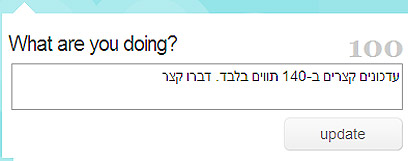 מה אתם עושים שם: קוראים, מצייצים, מרטווטים, חושבים שאתם מצחיקים, חושבים שאחרים לא מצחיקים, מחכים למנשן הבא ומקווים שיהיו לכם יותר עוקבים מאנשים שאתם עוקבים אחריהם.