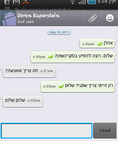 אחת התוכנות הפופולריות והנוחות למשלוח הודעות. אפשר ממש לצ'וטט בה ולראות מי נמצא אונליין, לשלוח הודעות, לשלוח תמונות וקטעי וידאו ולספק לחבר ששואל "איפה אני תופס אותך" קואורדינטות מדויקות באמצעות ה-GPS. התוכנה תומכת בעברית באופן מלא.