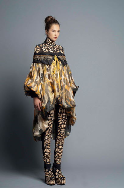 כדאי לשים לב גם למיזוג הסממנים האתניים והמערביים שבאו לידי ביטוי בקולקציה של נעה כץ. אחרי שטיילה במערב אפריקה בחרה כץ לעבוד עם צבעים עזים שמקורם במסורת של שבט זולו והתוצאה היא שמלות בצבעוניות שהרסה לי את הבריאות ואהבתי במיוחד את הז'קט המחויט והגיאומטרי בצבעי השחור-לבן. הבחירה של כץ במוטיבים האתניים מעניינת ויותר מכך - נכונה, שכן אחד הטרנדים החמים העונה הוא החזרה לאתניות ולשבטיות. המסורת של שבט זולו היא פרשנות יצירתית בהקשר הזה.
