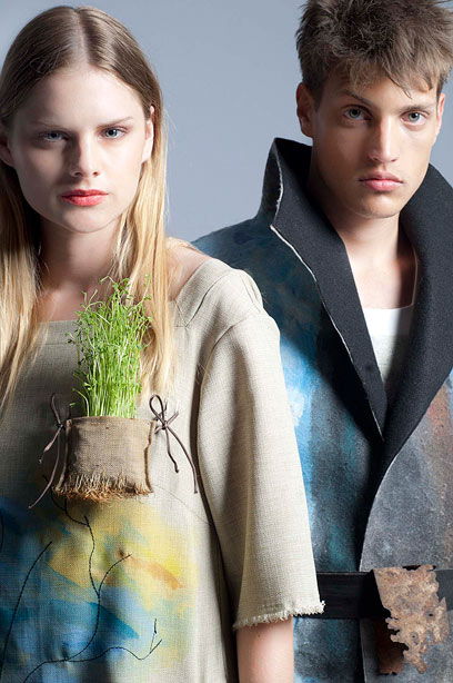 גם הגלביות שהציג ארז גולקו (הגבר היחידי בחבורה) הדירו שינה מעיניי, ובמיוחד הסטיילינג של צמחיה המציצה מכיס הטוניקה שלבשה אחת הדוגמניות.