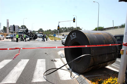 גליל הענק מחץ למוות את הנהג (צילום: אבי מועלם)