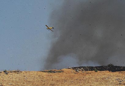 ארבעה צוותי כיבוי פועלים מהאוויר ברמת הגולן (צילום: אביהו שפירא)