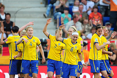 שחקניות שבדיה חוגגות מונדיאל מוצלח למדי (AFP)