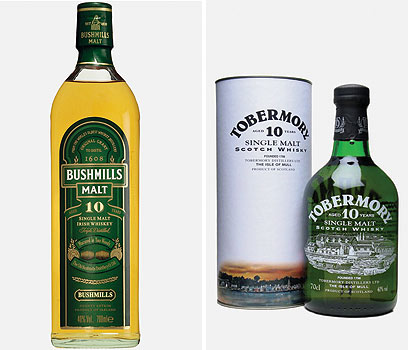 8) בושמילס מאלט 10 שנים. למקום האחרון הגיע הוויסקי האירי היחיד בטעימה. כמו אירי טוב הוא מזוקק שלוש פעמים בדוד, ועשוי מלתת שעורה שיובש בכבשן סגור, כך שהוא חף לחלוטין מעשן. הריח ירוק, והטעם מתקתק וקצת ונילי, עדות ליישון בחביות ברבן וסיום בחביות שרי. יחסית לוויסקי הוא מרענן. יחסית למים הוא חום (260 שקל ל־700 מ"ל).